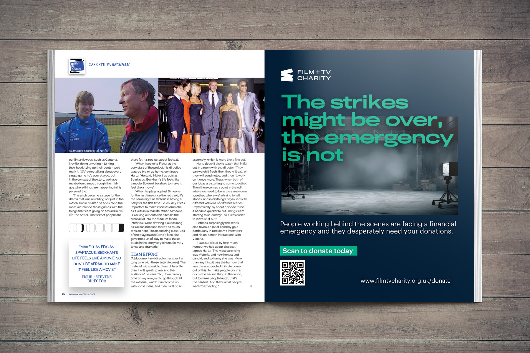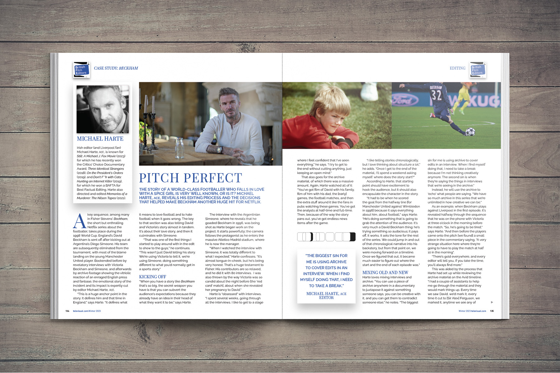 It’s not often you get to illustrate an article with photos of David Beckham, Sir Alex Ferguson, Tom Cruise and Will Smith! But in this feature about the editing behind the Netflix Beckham documentary, I made sure to give the images as much prominence as possible while keeping within the brand stylings of the British Film Editors.